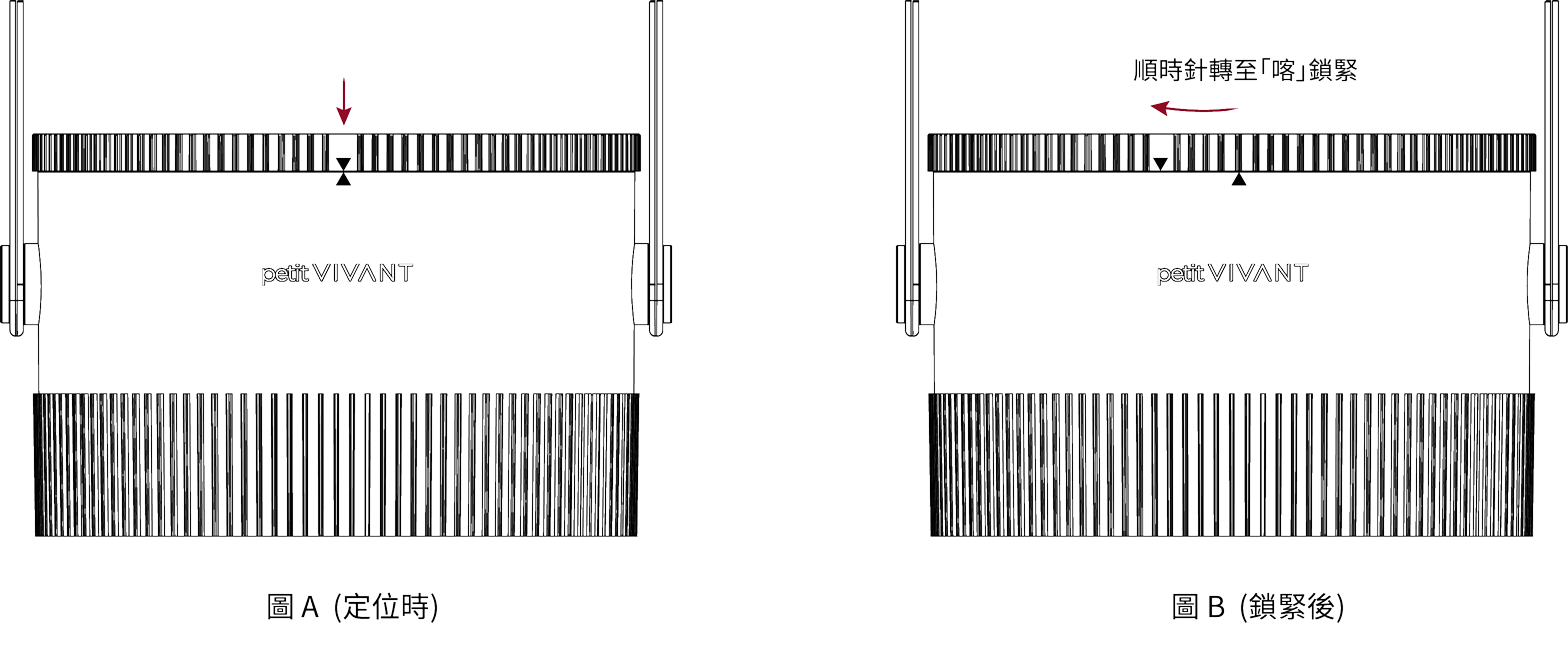 2. 順時針旋轉上蓋,直至聽到「喀」聲,確認上蓋已完全鎖至定位,不會左右搖晃,位置如圖B所示。